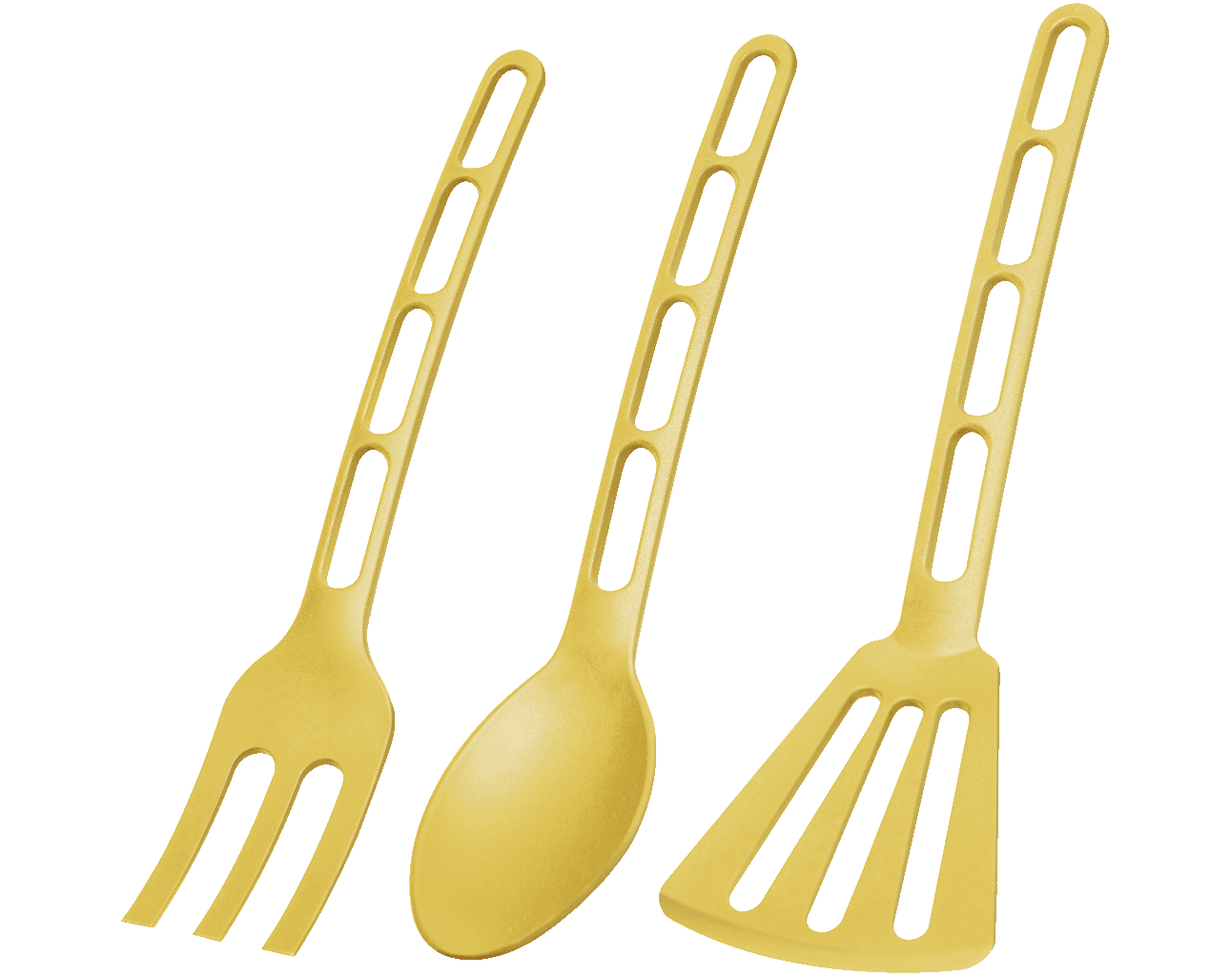 ЯШМА - разбудите вашу кухню.Новый желтый набор для готовки — идеальный способ начать день с улыбки и вкусных блюд. Лопатка, ложка и вилка — добавьте энергию солнца в завтраки, обеды и ужины.