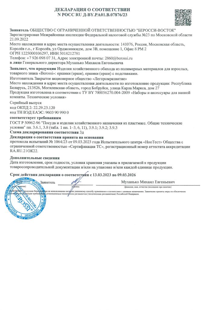 Пластиковая рукоять сделана из безопасного материала, а щетина ершика делается из упругих полиэтиленовых нитей.