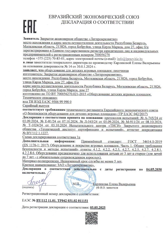 Безопасность — в песочнице гладкие края, отсутствуют острые углы.
